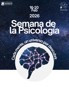 La Facultad de Ciencias Sociosanitarias de la Universidad Miguel Hernández celebrará del 16 al 20 de febrero la Semana de la Psicología, una iniciativa organizada con la participación de profesorado del Grado de Psicología y representantes del estudiantado, con el objetivo de promover la divulgación, la formación complementaria y el encuentro entre la comunidad universitaria y profesional.